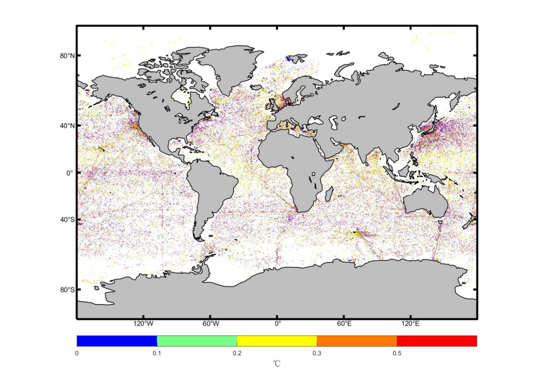 3.5 海表温度1/4 °分辨率平均值标准误(Miller Cylindrical 投影)(2005-2017)
