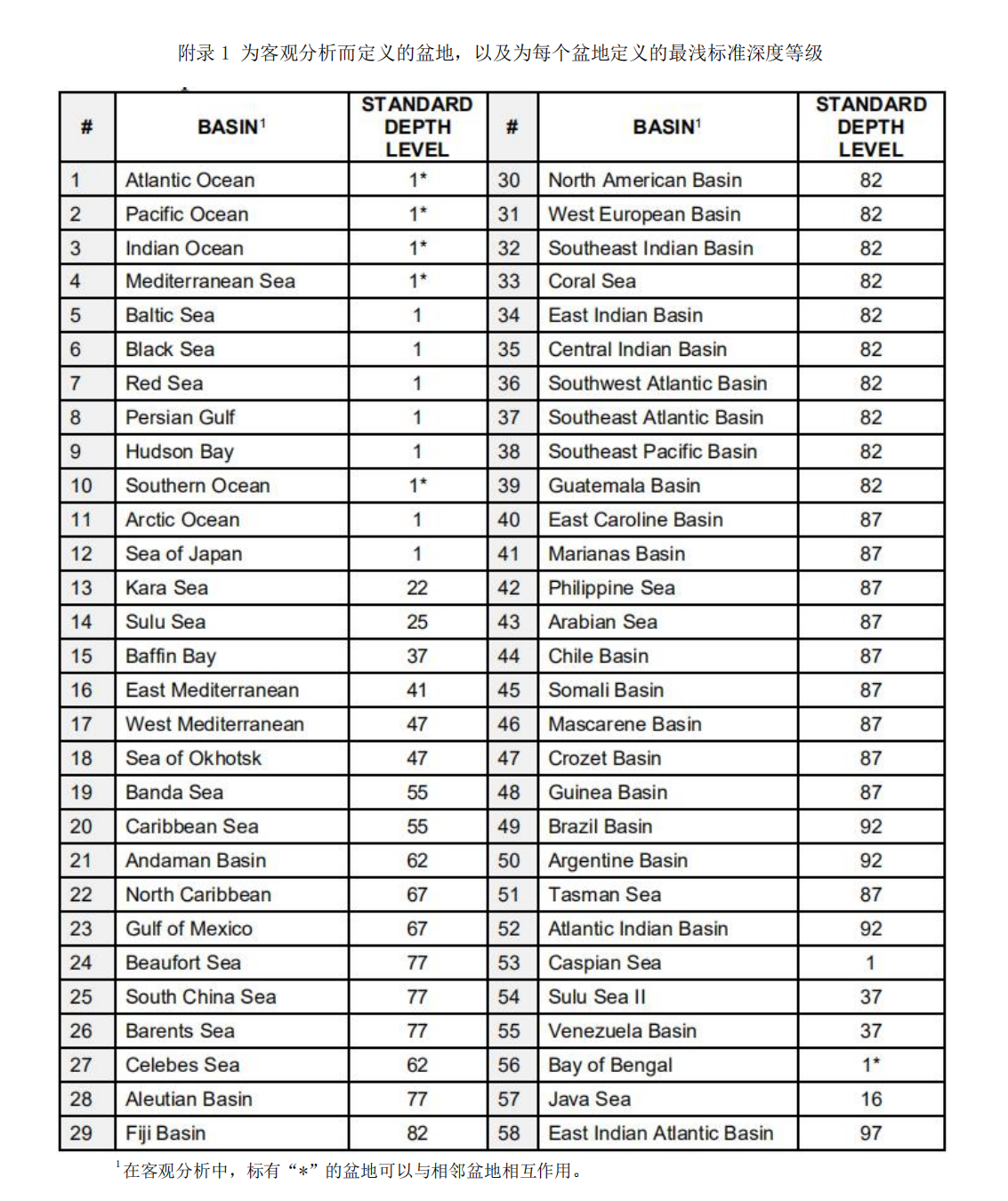 basin_XX.msk 文件包含从地面到 5500m 深处的每个标准深度处为每个网格正方形定 义的盆地代码。每个盆地由 1 到 58 的代码编号标识。给定 1/4°2和 1°2的盆地代码可能会 随着深度的增加而变化。附录 1 列出了盆地的地理名称、与每个盆地相关的代码编号以及首 次遇到给定盆地的标准深度。