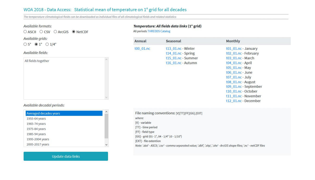 WOA 提供四种可获取的数据格式: