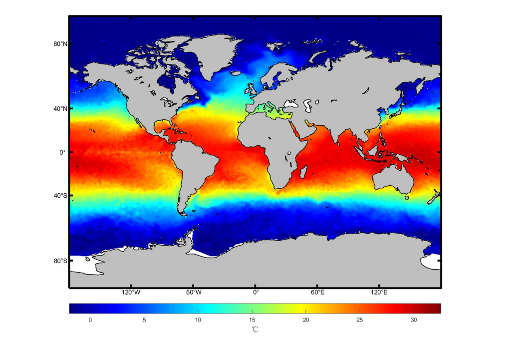 3.2 海表温度 1/4°分辨率客观分析平均场(Miller Cylindrical 投影) (2005-2017)